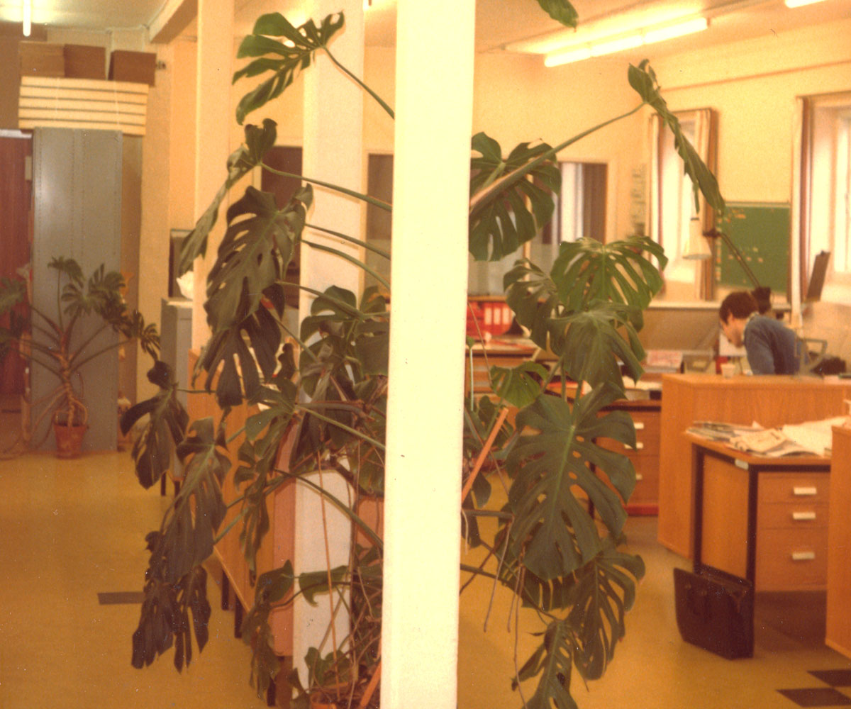 Dengang holdt PROCES-DATA til i lejede lokaler i Hostrupsgade. Vi fik planten af et firma, som havde haft den i 10 år, men som ikke længere havde plads til den. De havde selv fået planten 10 år tidligere af et andet firma.