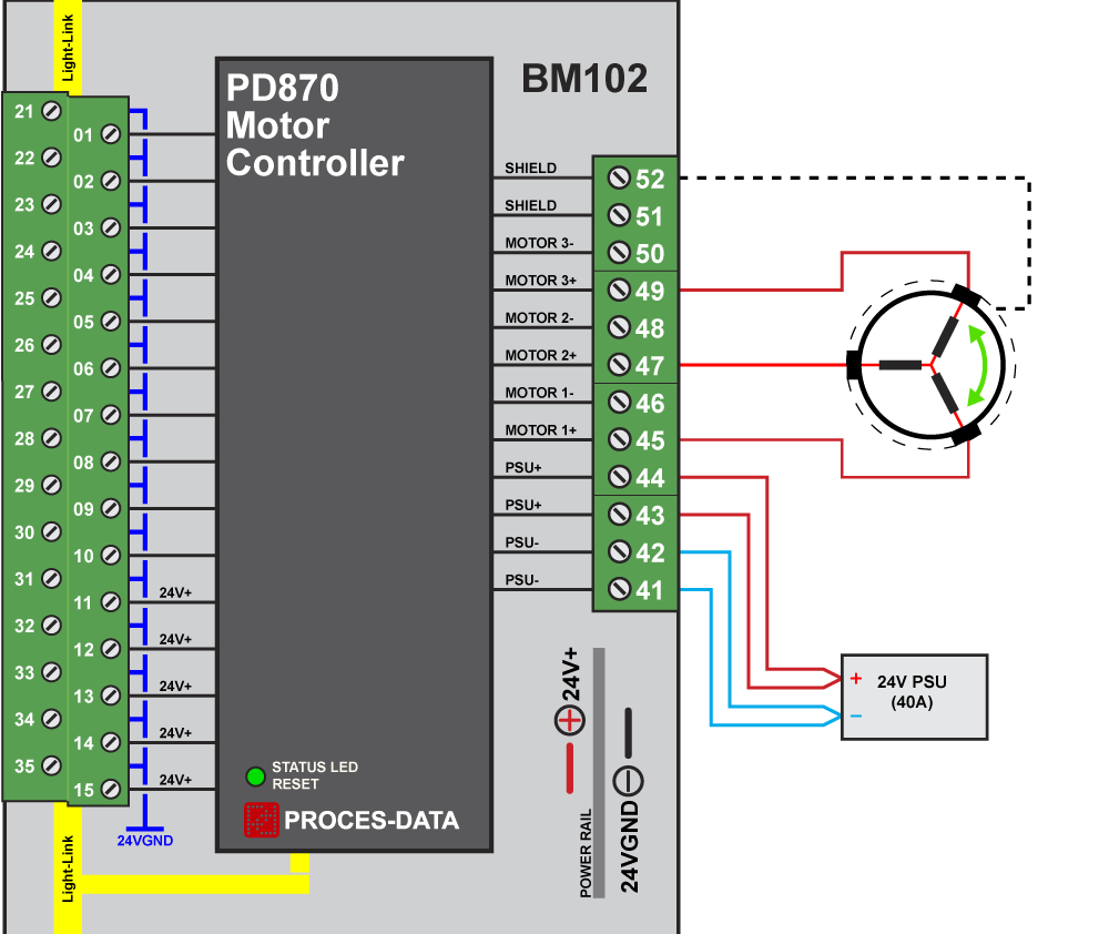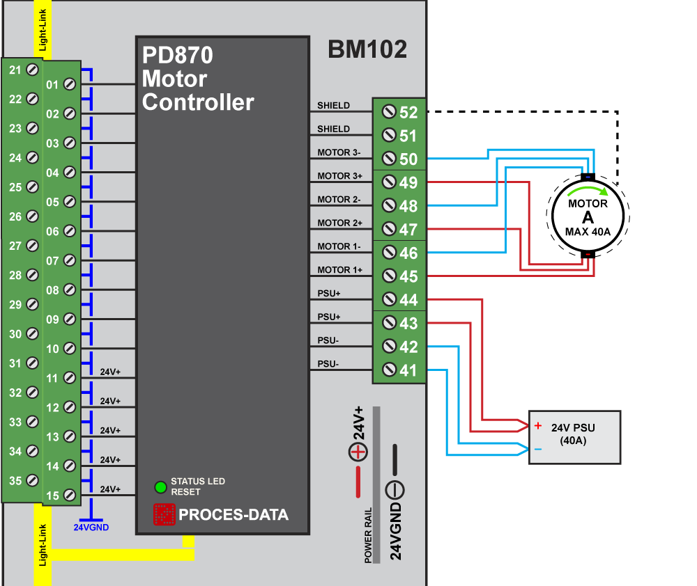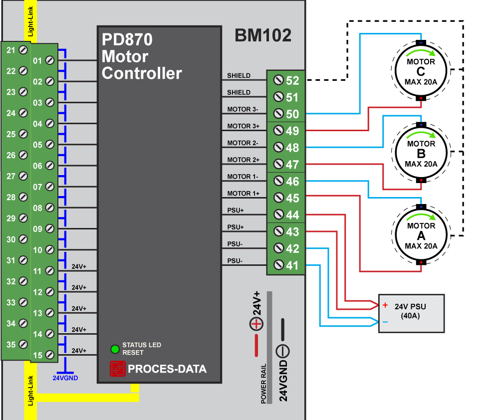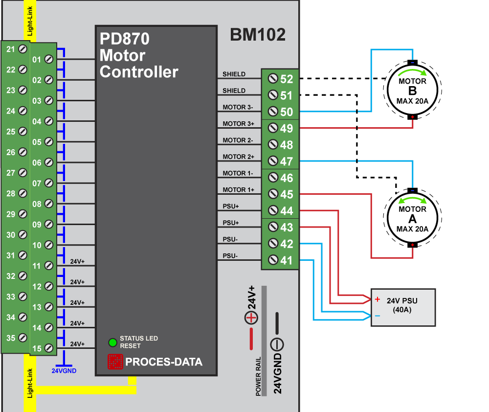 Be aware that the Motor Controller is a combination of the PD870 COPP controller and the BM102 high power base module.